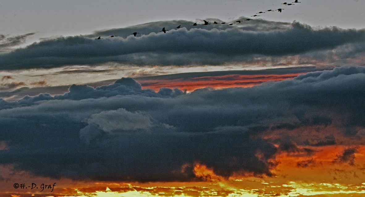Sie fliegen zum Schlafplatz auf die Halbinsel Großer Schwerin.