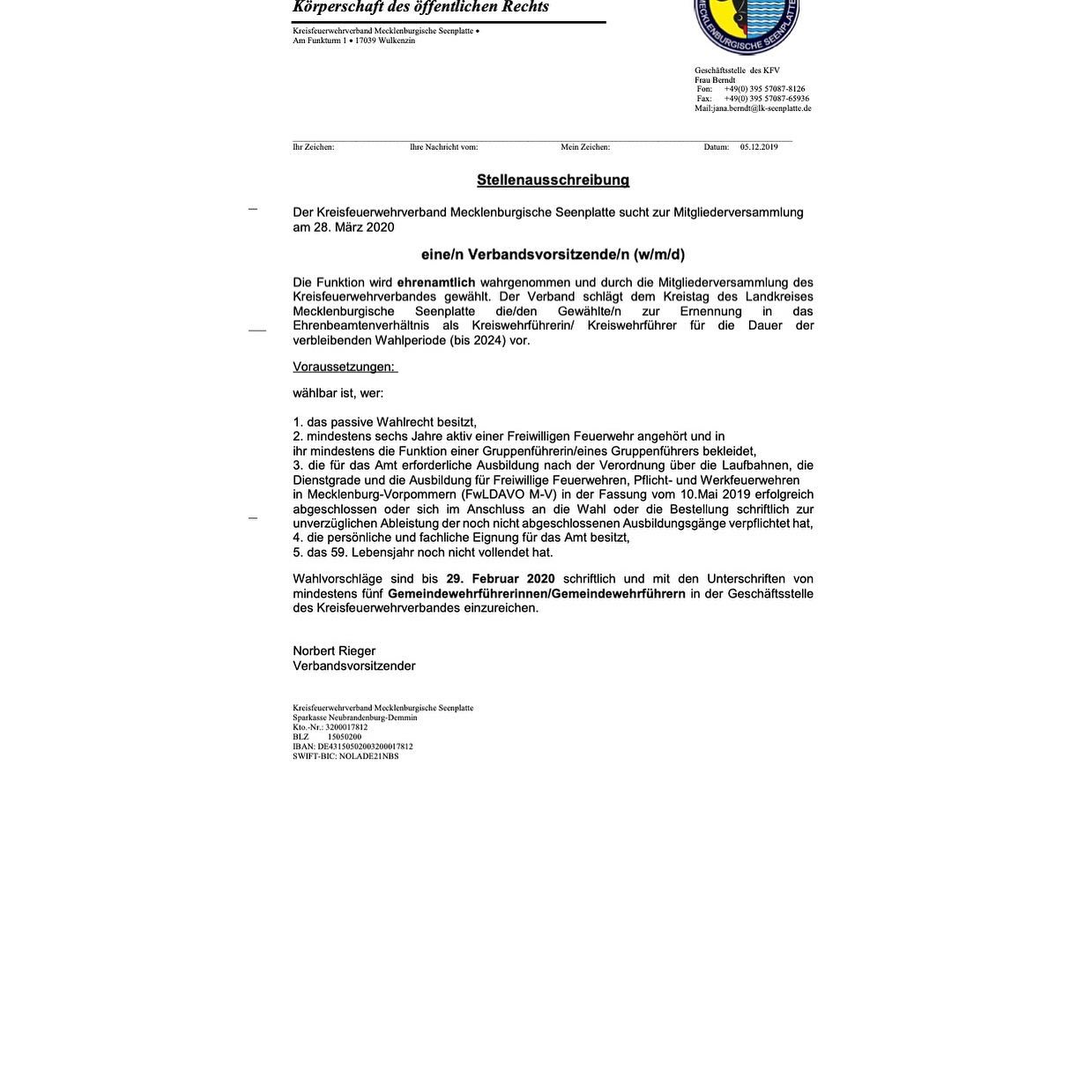 Inzwischen ist auch die Ausschreibung für das Amt des Kreisbrandmeisters erschienen. Hier ist sie: