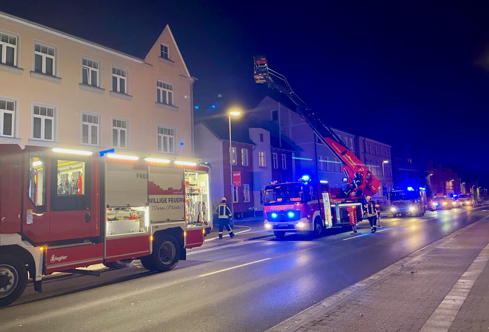 Warens Feuerwehrleute mussten heute Abend gegen 19.30 Uhr in die Mozartstraße ausrücken. Dort brannte es in einer Küche. Ersten Informationen zufolge wurde niemand verletzt, der Schaden steht noch nicht fest. Die B 192 musste während des Feuerwehreinsatzes voll gesperrt werden.