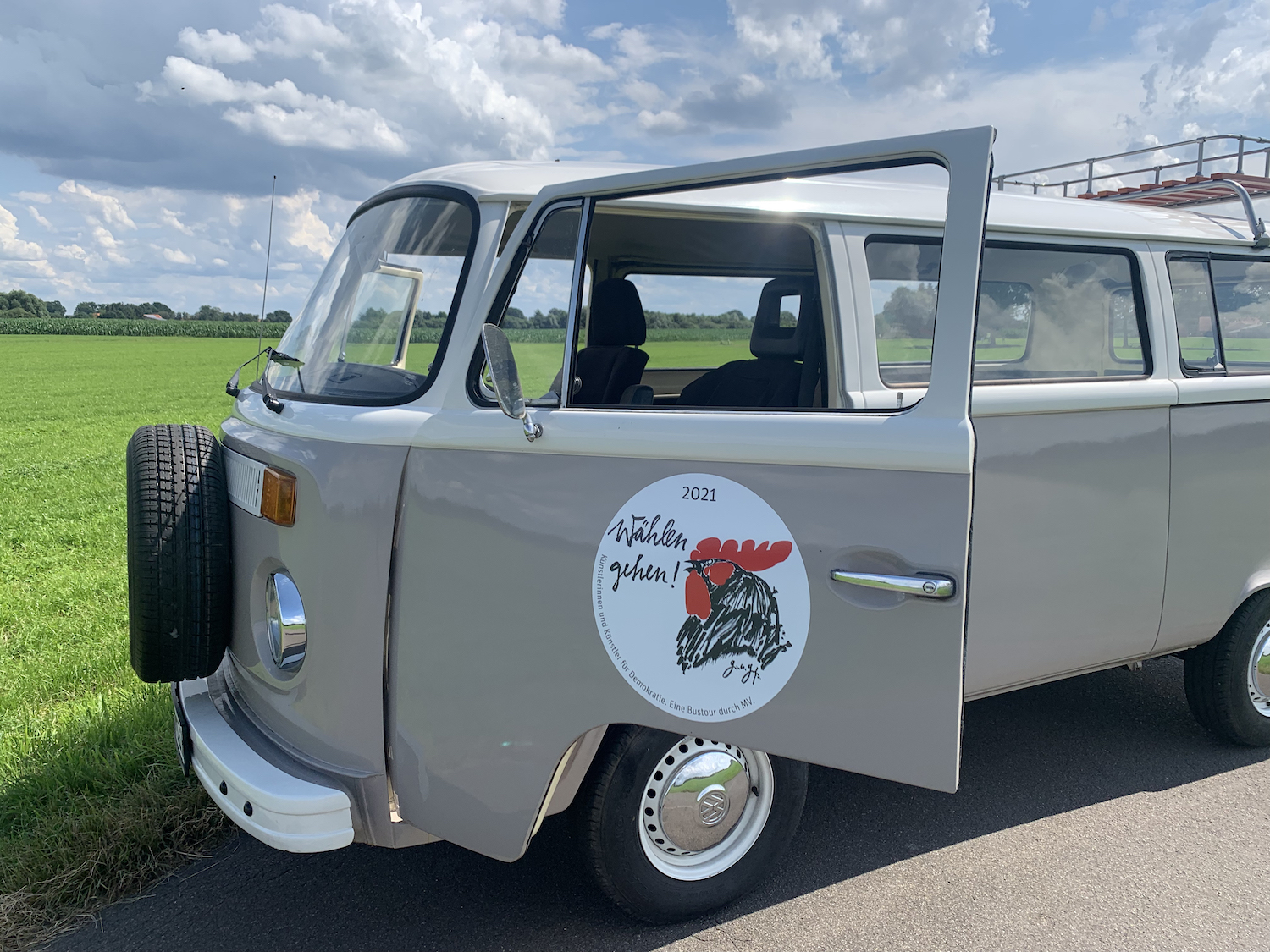 In welcher Gesellschaft wollen wir leben? Darüber geredet werden kann am 31. August um 12 Uhr auf dem Neuen Markt in Waren, am 4. September ab 11 Uhr in Neubrandenburg, ebenfalls auf dem Markt. Die Bulli-Tour von Künstlern durch Mecklenburg-Vorpommern stoppt am 4. September um 19 Uhr noch einmal in der Seenplatte, dann im Useriner Kulturstall. Die Liedermacherin Barbara Thalheim wird dort mit zu Gast sein.