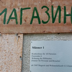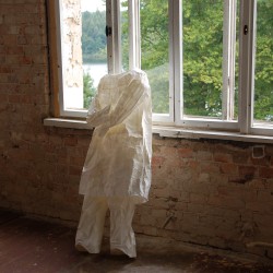 Dort können Besucher die Namen der Patienten und Bewohner an die Wand schreiben, die in Domjüch starben. „Wenn man einen Namen schreibt, bekommt derjenige eine Existenz“, erläutert die Vereinsvorsitzende Lau. Die Neubrandenburger Künstlerin Rico hat Arbeiten angefertigt, die an menschliche Hüllen erinnern.