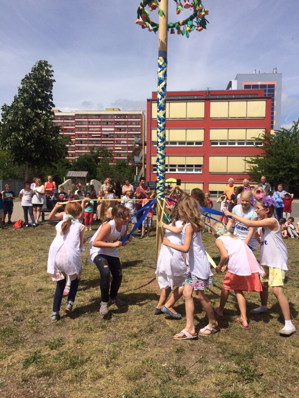Das Hortzentrum Waren West hat die Sommersonnenwende zum Anlass genommen, ein kunterbuntes fröhliches Fest zu veranstalten. Überall hingen selbstgemachte bunte Wimpel. Nach skandinavischem Vorbild wurde das Fest mit einem traditionellen Bändertanz um den Mittsommerbaum eröffnet.