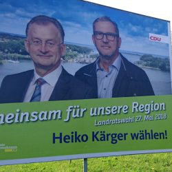 Einen Monat noch, dann stehen wieder Landratswahlen an der Seenplatte an. Während in Waren die Plakatzahl stark steigt, sind nun auch Malchow und Röbel gefolgt. Die Bürgermeister unterstützen den Amtsinhaber, der noch einmal sieben Jahre „regieren“ will. In Waren wird Kärger von Ex-Minister und heutigem Rentner Jürgen Seidel unterstützt.