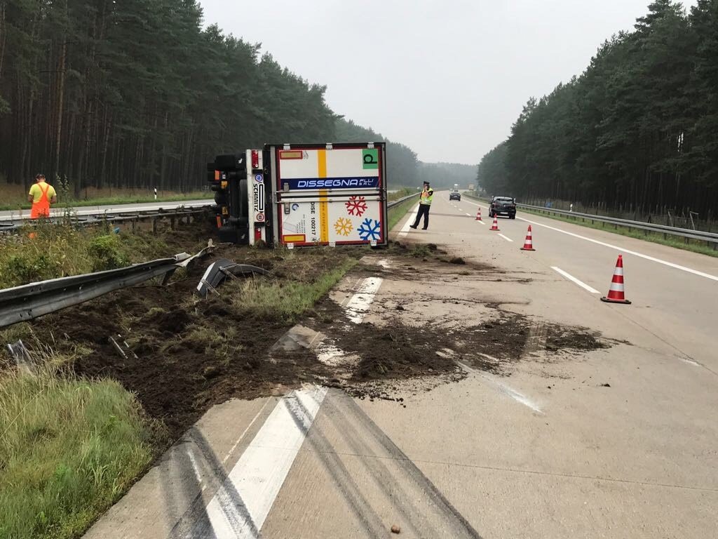 Heute morgen ist auf der A 19 zwischen den Anschlussstellen Linstow und Malchow ein Lkw in die Mittelschutzplanken gekippt. Der 43jährige Mann aus Rumänien kam nach Angaben der Polizei wegen eines Fahrfehlers nach links von der Fahrbahn ab und kippte. Er wurde leicht verletzt.