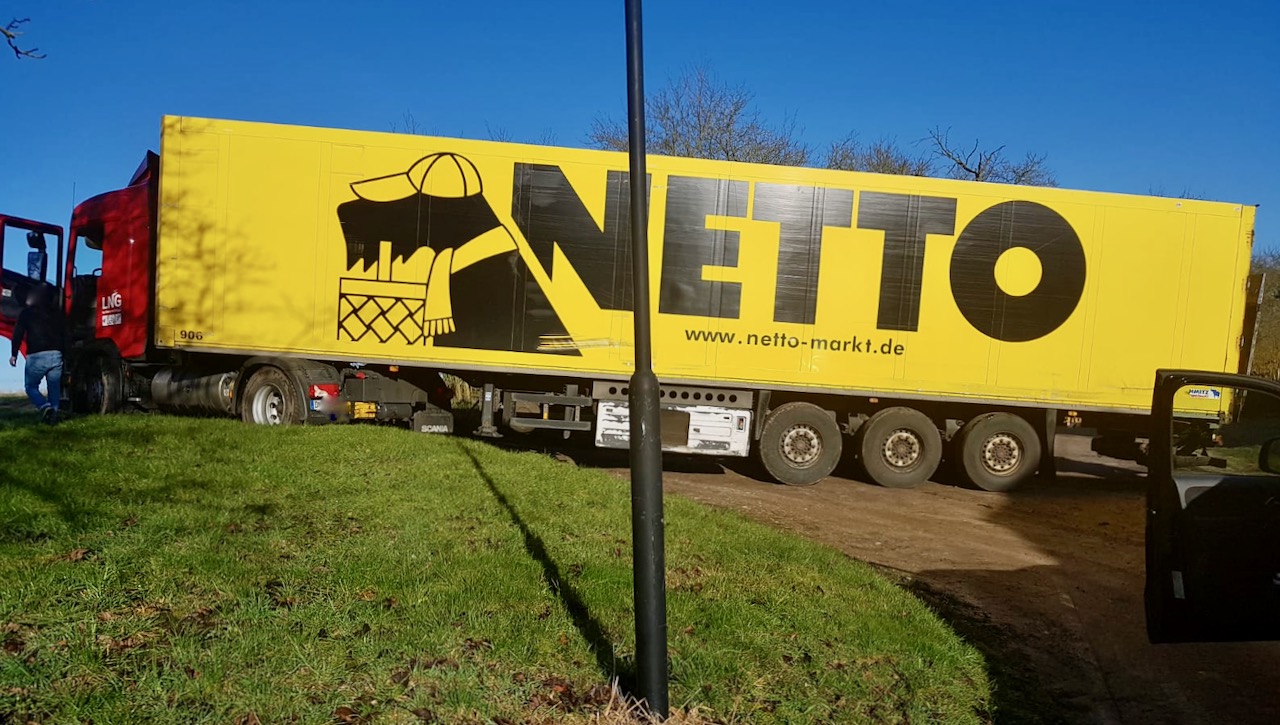 Haben die Jabeler zur besseren Versorgung in Corona-Zeiten etwa einen Lebensmittel-Lkw gekapert? Sieht fast so aus. Dieser hier steckt nämlich seit kurzem in der Lindenstraße fest, vermutlich, weil der Fahrer mit der Umleitung nicht zurecht gekommen ist.