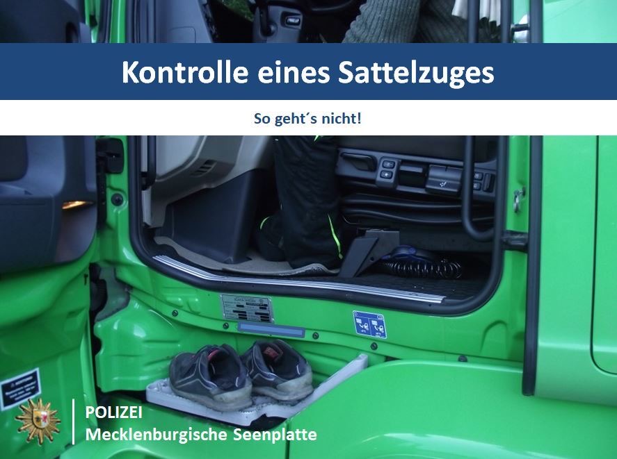 Die Polizei hat am Donnerstag in Neubrandenburg einen Sattelzug aus dem Verkehr gezogen, der erhebliche Mängel aufwies. Der Fahrer war im wahrsten Sinne des Wortes von den Socken: Der Sattelzug für Stückguttransporte fiel den Beamten auf, weil seine Ladung ungesichert auf der Ladefläche stand. Der 37-jährige deutscher Fuhrunternehmer aus dem Raum Stralsund hatte Baumaterialien aus Möllenhagen geladen, die er zu einem Kunden in Neubrandenburg befördern wollte. Beim Öffnen der Fahrertür stellten die Beamten den Fahrzeugführer des Sattelzuges auf Socken, ohne festes Schuhwerk, fest.