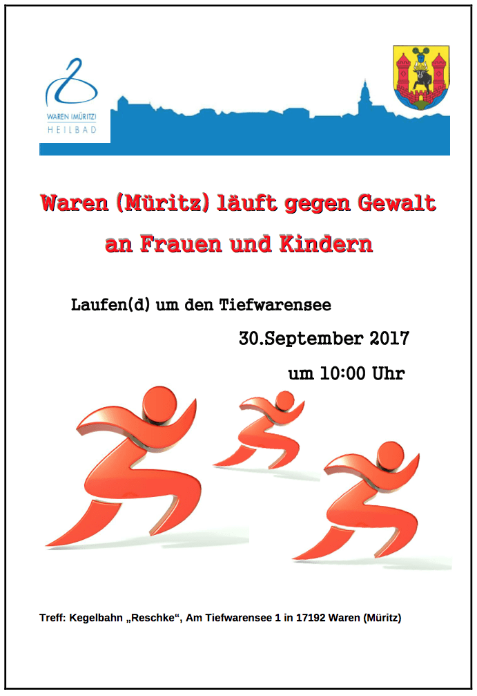 Nicht nur Herbstlauf des Müritzer LSV morgen, 30. September, ab 10 Uhr am Tiefwarensee, sondern gleichzeitig auch ein Lauf gegen Gewalt an Frauen und Kindern.