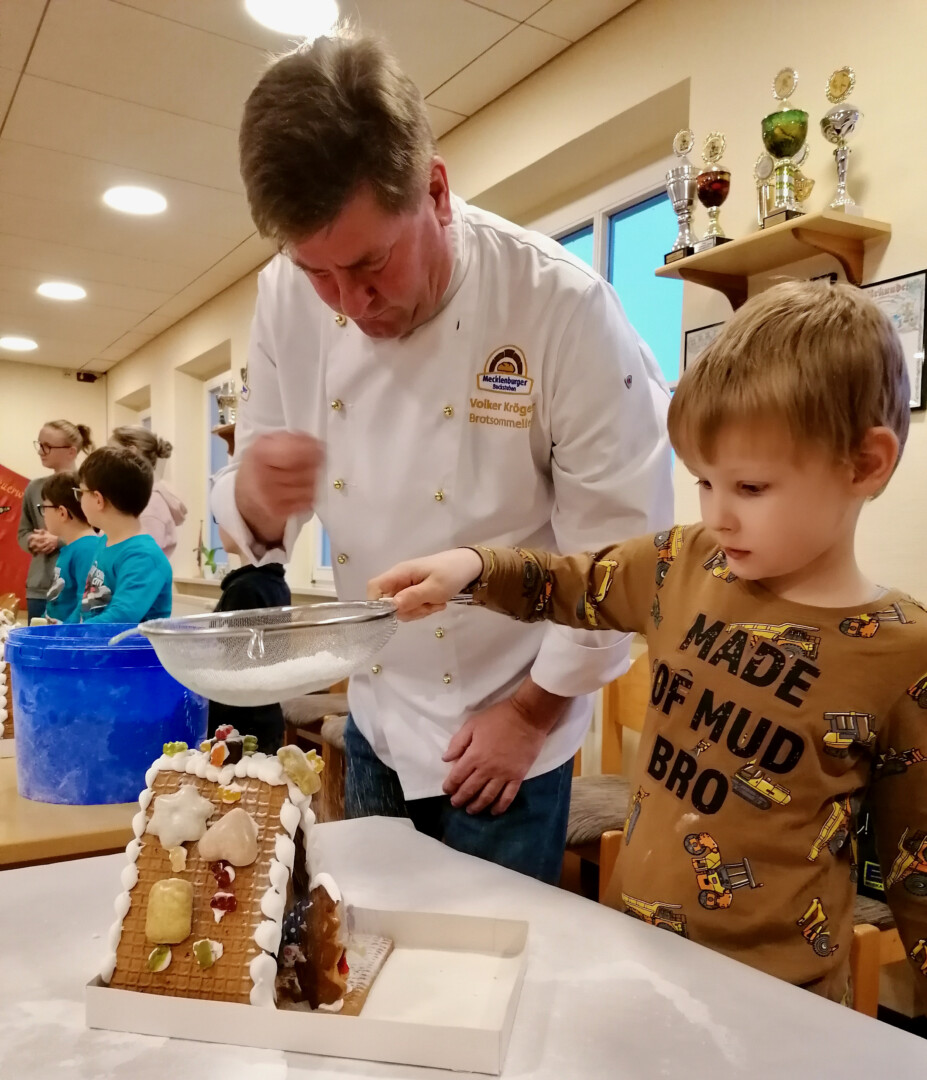 Sie können nicht nur mit Schläuchen und Spritzen umgehen, sondern auch mit Teig und Zuckerguss: Die Jüngsten der Warener Feuerwehr haben vor wenigen Tagen tolle Lebkuchenhäuser gestaltet. Dabei hatten sie hoch professionelle Anleitung: Volker Kröger, Produktentwickler und Brotsommelier bei dem Mecklenburger Backstuben und selbst Kamerad, kam mit der Auszubildenden Gina und leitete die Löschfüchse an. Die Mädchen und Jungen waren mit Feuereifer bei der Sache und bastelten mit viel Phantasie sowie ordentlich Zuckerguss viele kleine Kunstwerke. Die Betreuer und die Wehrführung bedanken sich ganz herzlich bei Volker und Gina: „Ihr habt unseren Löschfüchsen einen wunderschönen Nachmittag bereitet!“