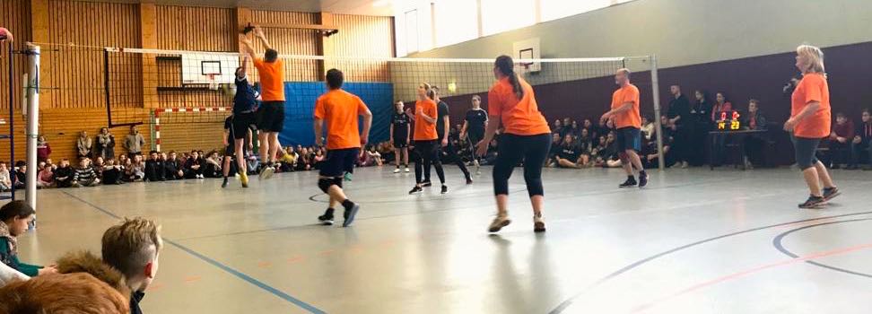Abschließend traten traditionell die Lehrer gegen die Schülerauswahl Klasse 10 an. Dabei sahen alle anderen Klassen zu und feuerten kräftig an. „Das gibt ein gutes Gefühl“, beschreibt Kerstin Voß den Zusammenhalt in der Schule.