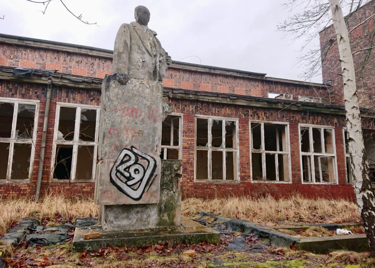 Zwischen den eingezäunten Solarflächen erinnert im Vergleich zu früher nicht mehr viel an die Militärzeit, außer mehrere ruinöse Hangars, ein Uhren- und Haupttturm, ein paar Backsteingebäude sowie eine Lenin-Statue. Diese Bauwerke wären auch schon abgerissen worden, glaubt die Museumsleiterin, aber sie wurden unter Denkmalschutz gestellt und verfielen.