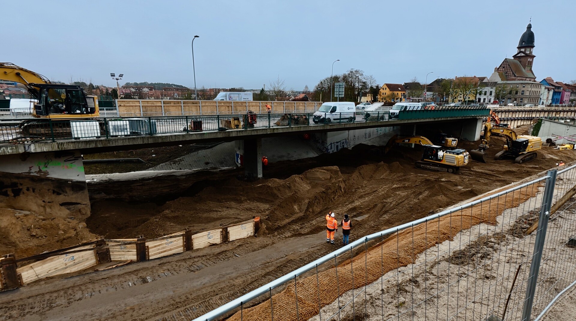 Die Gleise und Leitungen sind inzwischen demontiert, das Kiesbett ist aufgeschüttet: Die Vorbereitungen zum Abbruch der Nordbrücke über den Bahngleisen in Waren (Müritz) stehen kurz vor dem Abschluss. Der Abbruch wird am kommenden Sonntag, 19. Januar, durch eine sogenannte Auswurfsprengung der Brückenpfeiler durchgeführt: Die beiden Pfeiler der Brücke werden gesprengt und der Überbau kontrolliert auf das Kiesbett geführt.