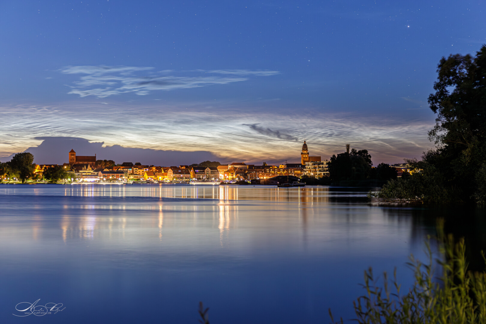 Mit diesem tollen Bild, aufgenommen vom Warener Fotografen André Pretzel heute früh eine halbe Stunde nach Mitternacht, wünschen wir einen tollen Abend. Die leuchtenden Nachtwolken konnte man mit dem bloßen Auge erkennen.