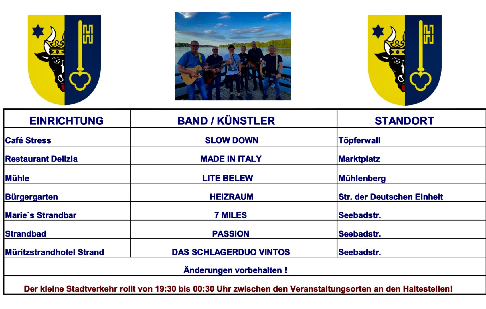 „Röbel live” heißt es am kommenden Sonnabend, 19. August, wieder in der kleinen Müritzstadt. Von 20 bis 24 Uhr gibt es in diesem Jahr sogar in sieben Röbeler Kneipen und Gaststätten wieder exzellente Live-Musik. Ein Ticket kostet 10 Euro. “Wir sind Müritzer” verlost für diese beliebte Kneipenmeile heute zweimal zwei Freikarten.