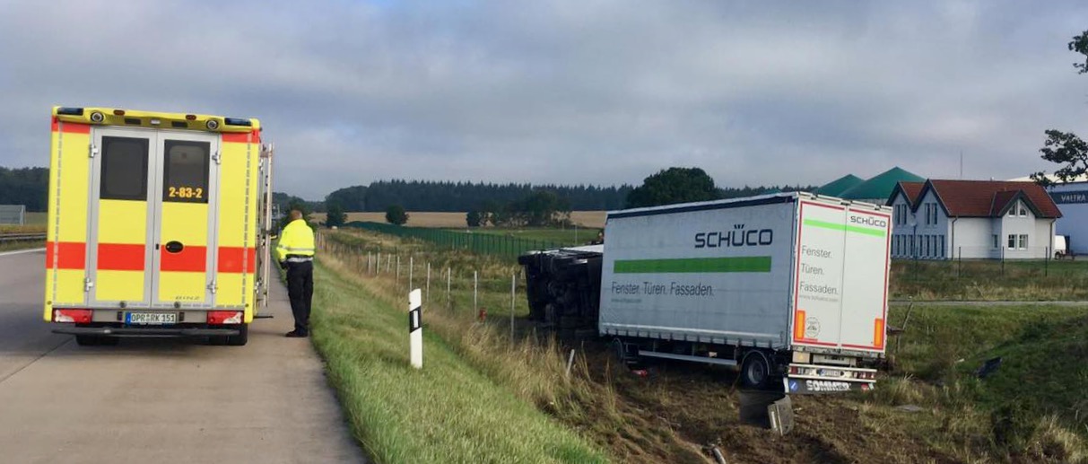 Gegen 8.10 Uhr ist ein Lkw mit Anhänger kurz hinter der Anschlussstelle Röbel nach rechts von der Fahrbahn abgekommen, durch den Wildschutzzaun gefahren und kippte dann auf die rechte Seite. Bei dem Unfall blieb der 32-jährige Kraftfahrer unverletzt. Der Lkw und der Anhänger sowie die Ladung aus Kunststoff- und Metallprofilen für den Fensterbau, wurden massiv beschädigt. Auf Höhe der Unfallstelle weiden neben der Autobahn Rinder. Diese wurden durch den Unfall verschreckt. Ein Rind wurde durch den umkippenden Lkw getötet.