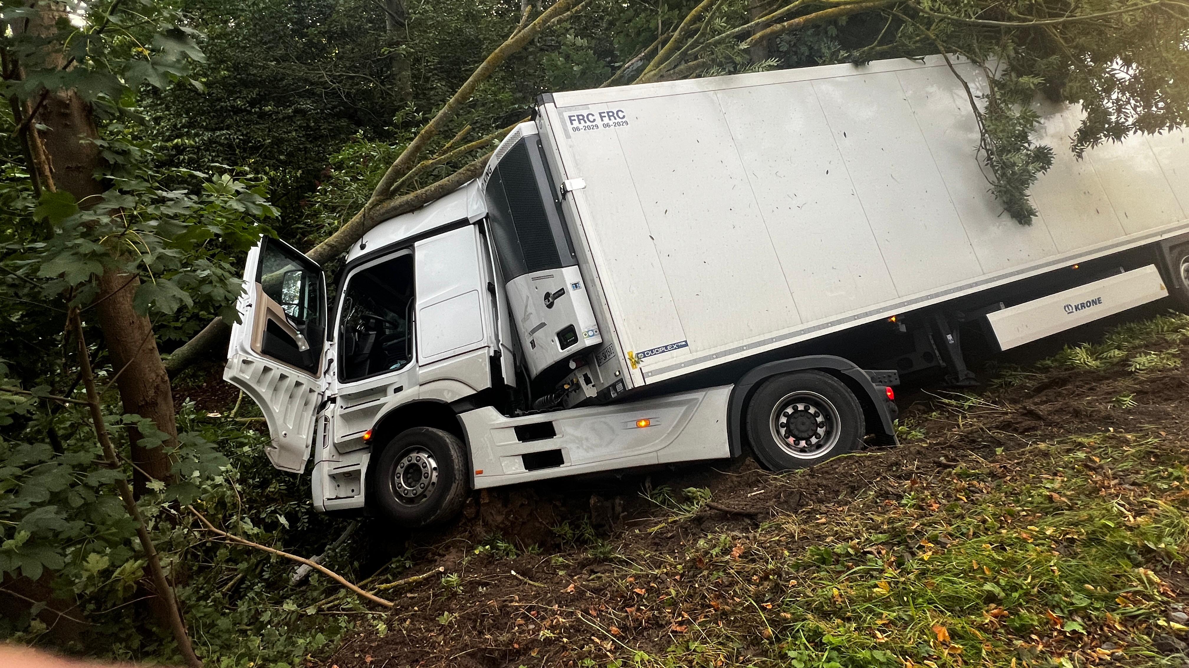 Heute Morgen ist kurz nach 6 Uhr ein 30-jähriger Deutscher mit seinem Lkw auf der B 104 in Höhe Küssow in Fahrtrichtung Neubrandenburg nach rechts von der Fahrbahn abgekommen. Zur Unfallursache dauern die Ermittlungen noch an. Von einem Wildunfall oder der Beteiligung anderer Fahrzeuge geht die Polizei aktuell nicht aus. Der Fahrer blieb unverletzt. Die Straße muss vermutlich bis heute Abend voll gesperrt werden.