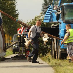 Am heutigen Vormittag gegen 8:45 Uhr ist ein mit 5.800 Masthähnchen beladener 40-Tonner auf der B192 bei Malchow in den Straßengraben gestürzt. Etliche Hähnchen die auf dem Weg von Pasewalk zu einem Schlachthof bei Neustadt-Glewe unterwegs waren, überlebten den Unfall nicht.