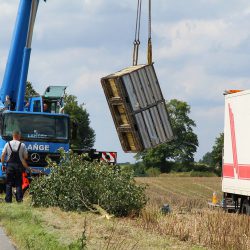 Im Laufe des Nachmittages wurden die teils schon verendeten Tiere auf einen dafür bereitgestellten Lkw umgeladen. Die Bergung des Lkw soll in den Abendstunden beginnen. Dazu muss die B192 zwischen Sietow und Malchow voll gesperrt werden.