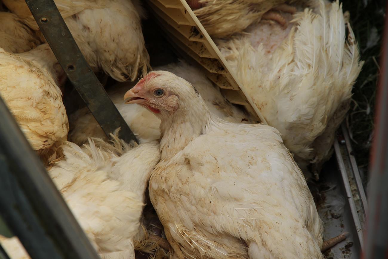 Eine Mitarbeiterin des Veterinäramtes des Landkreises Mecklenburgische-Seenplatte war während der Bergungsmaßnahmen vor Ort und überwachte das Umladen der Masthähnchen.