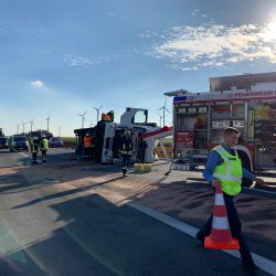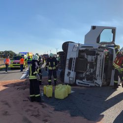 Im Einsatz sind die Kameraden der Freiwilligen Feuerwehr aus Wittstock. Hunderte Liter Diesel müssen aus dem umgestürzten Lkw abgepumpt werden. Die Autobahn 19 bleibt in Fahrtrichtung Rostock noch mindestens bis 21 Uhr voll gesperrt. Nach dem Unfall muss die Fahrbahn erst noch aufwendig gereinigt werden, teilte die Feuerwehr mit. In den Abendstunden soll dann die Bergung des mit Servietten beladenen Lkw begonnen werden.