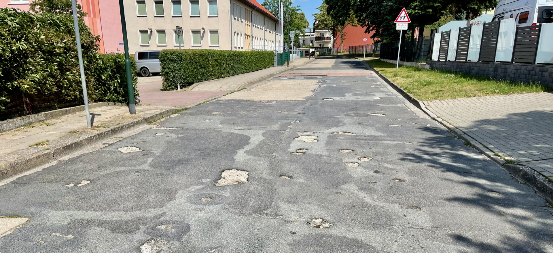 Wenig anders sieht’s in der Parallelstraße, der Schillerstraße, aus. Doch bei der Stadt scheinen diese beiden Straßen gar keine Rolle zu spielen. Wie es auf eine Anfrage von „Wir sind Müritzer“ heißt, gibt es weder Pläne, die Einsteinstraße zu sanieren, noch die Schillerstraße. Warum, weshalb nicht – keine Ahnung.