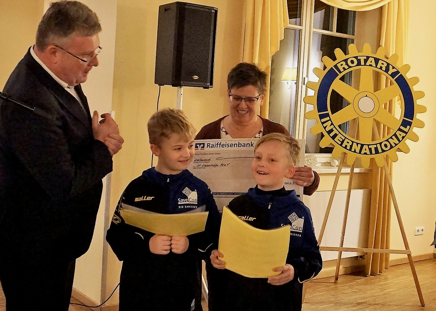 Ganz, ganz viele Schecks auf einmal: Der Lions Club Müritz und der Rotary Club Waren haben vor wenigen Tagen richtig viel „Knete“ verteilt: 40 000 Euro gingen an verschiedene Vereine, Verbände und Projekte der Müritz-Region, vor allem für die Kinder- und Jugendarbeit. Das Geld stammt aus der beliebten Weihnachtslotterie, deren 8000 Kalender wieder komplett verkauft wurden (WsM berichtete). Als kleine Stars entpuppten sich bei der Spendenübergabe übrigens der achtjährige Ben und der neunjährige Jack – beide große Ronaldo-Fans und Mitglied im SV Grabowhöfe, der Geld für ein Sommercamp erhalten hat. Ben und Jack hatten nämlich einen kleine Rede vorbereitet. Zwar waren sei ein wenig aufgeregt, was bei so vielen „wichtigen“ Leuten, die im Saal saßen, auch kein Wunder ist, aber ihre Worte wurden aber mit ordentlich Beifall bedacht.