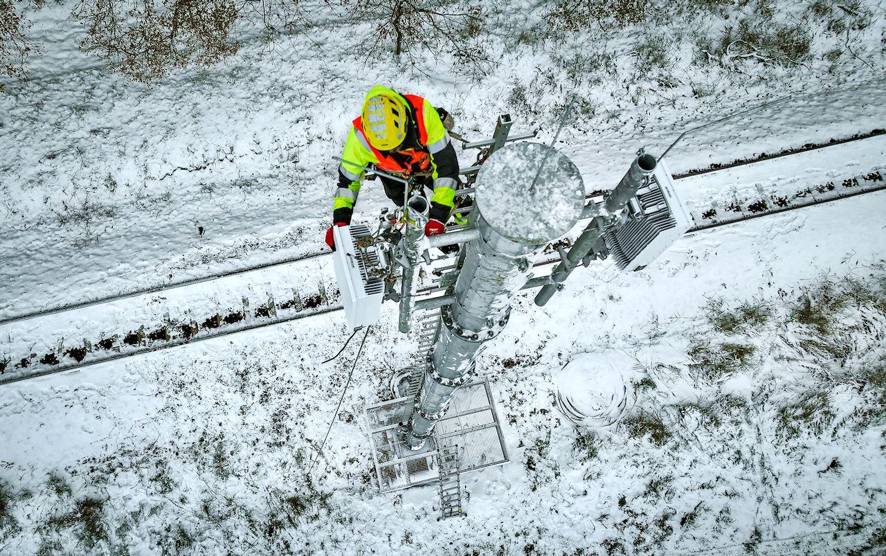 Für das vom Bundesministerium für Digitales und Verkehr mit 6,4 Millionen Euro gefördertes Forschungsprojekt haben die Partner in Rekordzeit gearbeitet: Für die 13 Funkmasten brauchte Vantage Towers gerade einmal einen guten Monat. Möglich ist dieses hohe Tempo durch das zukunftsweisende Design der rund 15 Meter hohen Masten: Ihre Elemente wurden am Boden vormontiert, mithilfe eines Zwei-Wege-Baggers übereinander gesetzt und miteinander verschraubt. Im Boden sind die Masten mit Stahlverstrebungen verankert, sodass keine Betonfundamente mehr gegossen werden müssen. Die CO2-Emissionen für die Zementproduktion werden deutlich reduziert. Diese Bauweise soll einen effizienten, kostengünstigen und ökologischen FRMCS-Rollout ermöglichen.