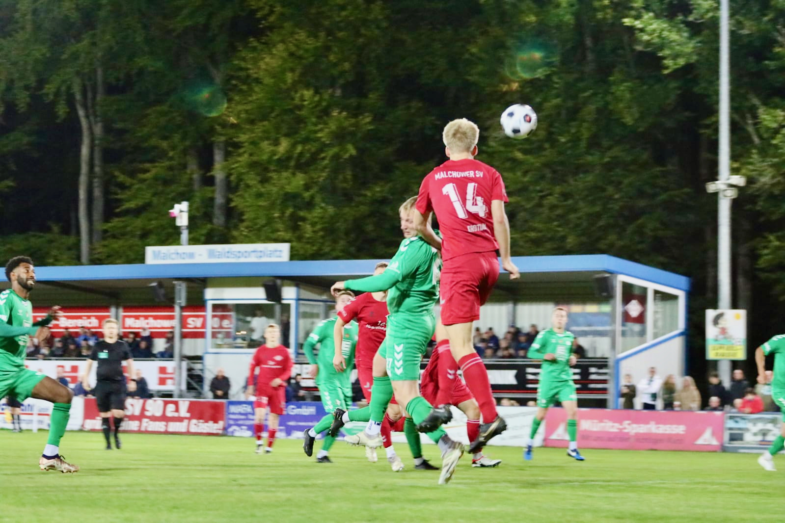Das Verbandsliga-Spiel begann für die Malchower Fußballer mit einem Schock. Im heimischen Stadion konnte Gegner MSV Pampow bereits nach 27 Sekunden die 1:0-Führung erzielen. Ausgangspunkt waren zwei gravierende Fehler von Tammo Ehrig sowie Torwart Niclas Kühn, der einen leicht zu haltenden Ball durch die Finger flutschen ließ. Auch in der Folgezeit waren die Pampower die tonangebende Mannschaft. In der 19. Minute erzielte ihre Nummer 7 seinen zweiten Treffer zum 2:0 für die Gäste.