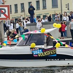 Die Malchower sind eben ein besonderes Völkchen. Sie stellen seit vielen, vielen Jahren das beliebteste und beste Volksfest weit und breit ohne fremde Hilfe auf die Beine und sie lassen sich auch nicht durch die diesjährige Absage davon abbringen, Spaß zu haben. Heute Abend haben unter anderem der Spielmannszug und viele geschmückte Boote für Stimmung an der Drehbrücke gesorgt.