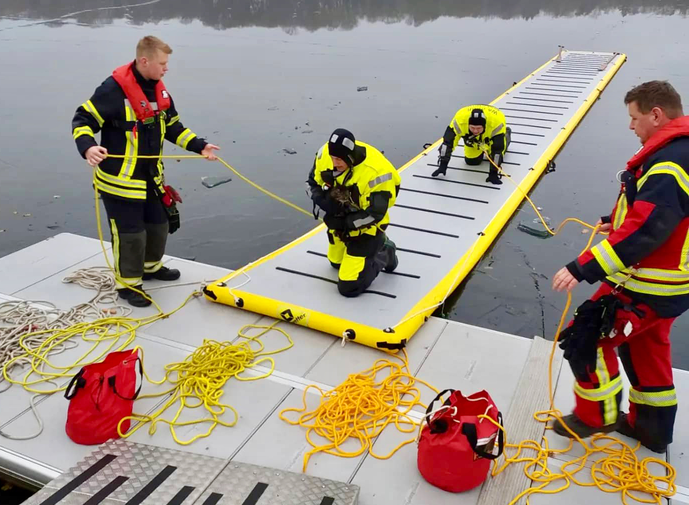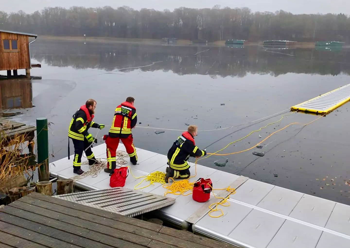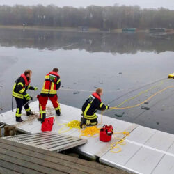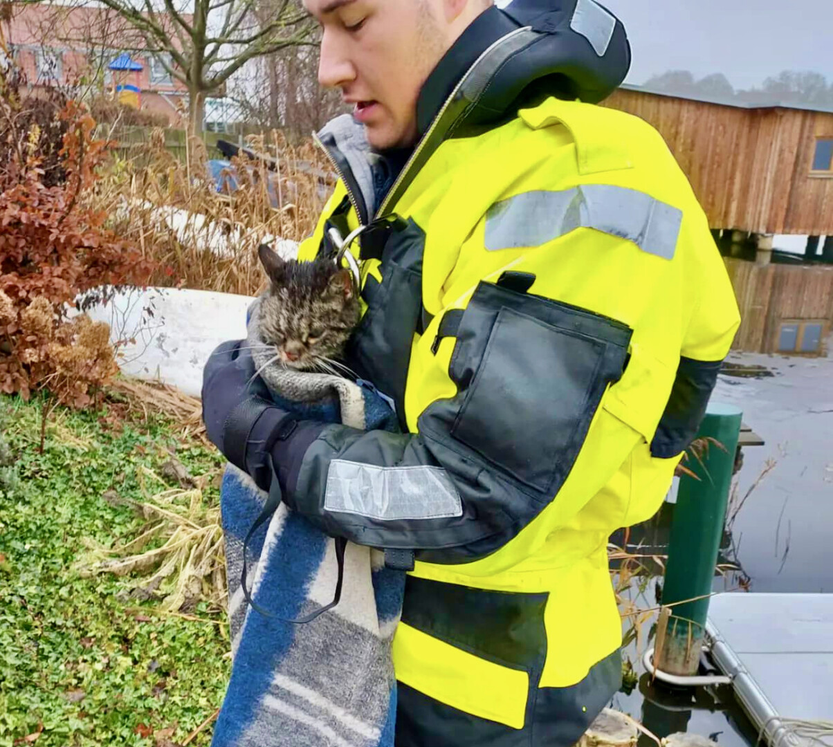 Ein ungewöhnlicher und auch ein nicht ganz ungefährlicher Einsatz für die Freiwillige Feuerwehr in Malchow heute Vormittag: Anwohner haben auf dem dünnen Eis des Malchower Sees etwa 20 Meter vom Ufer entfernt eine hilflose Katze entdeckt. Die Malchower Kameraden sind für Eisrettungen bestens ausgestattet und holten – natürlich selbst perfekt gesichert – die patschnasse und erschöpfte Katze vom See.