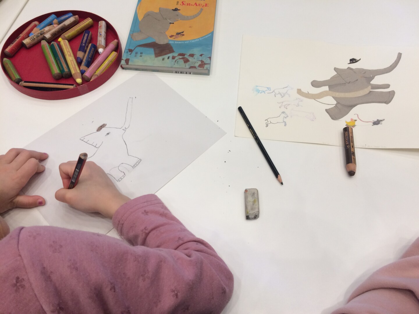 Was wäre ein Kinderbuch ohne Bilder oder Zeichnungen? Bilder helfen, den Text zu verstehen und die Fantasie zu entwickeln. Die bunten Illustrationen und die fantasievollen Geschichten regen nicht nur unsere Vorstellungskraft an, sondern wecken auch die Liebe zum Lesen. Diese Möglichkeit hat die Stadtbibliothek Malchow den Kindern des Hortzentrums in der ersten Ferienwoche gegeben. Zu Gast war die Illustratorin Claudia Burmeister. Sie lebt in der Mecklenburgischen Schweiz, gar nicht weit von Malchow. Die Bibliothekarin stellte das von Claudia Burmeister illustrierte Buch „Bommelböhmer und Schnauze“ vor, und die Illustratorin zeichnete dazu ein großes Bild. Danach gab es einen Rundgang durch die Ausstellung. Claudia Burmeister beantwortete alle Fragen der Kinder zur Arbeit einer Illustratorin oder wie das Bild in das Buch kommt oder ob man jeden Tag Lust zum Zeichnen hat. Unter ihrer Anleitung wurden die Mädchen und Jungen selbst zu Künstlern. Die Ausstellung ist bis zum 23. April in der Stadtbibliothek Malchow zu den Öffnungszeiten zu sehen. Eine kleine Auswahl von Postkarten kann käuflich erworben werden.