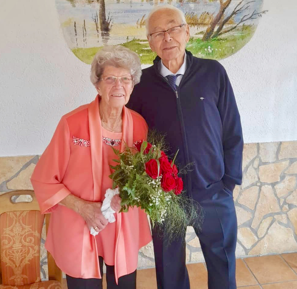 Ganz liebe Glückwünsche gehen heute an Renate und Fritz Schulze in den Clara-Zetkin-Ring nach Malchow. Das Paar feiert heute den 70. Hochzeitstag, die so genannte Gnadenhochzeit! Kennengelernt haben sich die 89-Jährige und der 91-Jährige im Jahr 1946 auf der Rodelbahn in Berlin Friedrichshain, 1953 kam ihr Sohn Ingo zur Welt, zwei Jahre später zog das Paar nach West-Berlin. Fritz hatte eine Anstellung im Ägyptischen Museum. Renate arbeitete bis zur Rente beim Finanzamt. Vor vier Jahren holten Sohn und Schwiegertochter das Paar nach Malchow, um sich besser um die beiden Senioren kümmern zu können. Auch die beiden Enkeln kommen häufig zu Besuch. Im Februar dieses Jahres mussten Renate und Fritz Schulze leider einen schweren Schicksalsschlag verkraften: Ihr einziger Sohn verstarb nach kurzer schwerer Krankheit. Seitdem ist für das Paar nichts mehr, wie es war. Dennoch haben die Jubilare ihren heutigen 70. Hochzeitstag im kleinen Kreis in der Pension am See in Malchow gefeiert. Ihr verstorbener Sohn war in ihren Gedanken mit dabei.