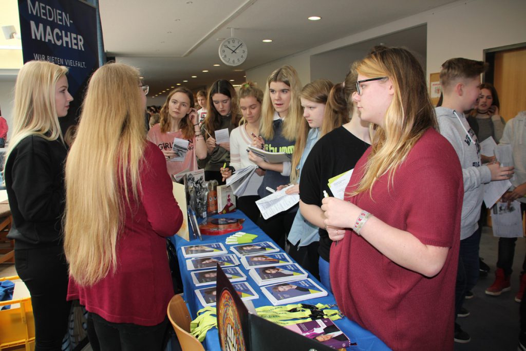 Etwa 20 Austeller und zukünftige Ausbilder informierten über verschiedene Berufsbilder und Studiengänge. So waren beispielsweise der Bauernverband, Handwerksbetriebe, die Ärztekammer, die Polizei, Handelsunternehmen und Gastronomen mit ihren Auszubildenden vor Ort.