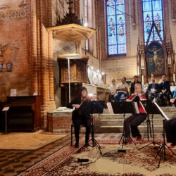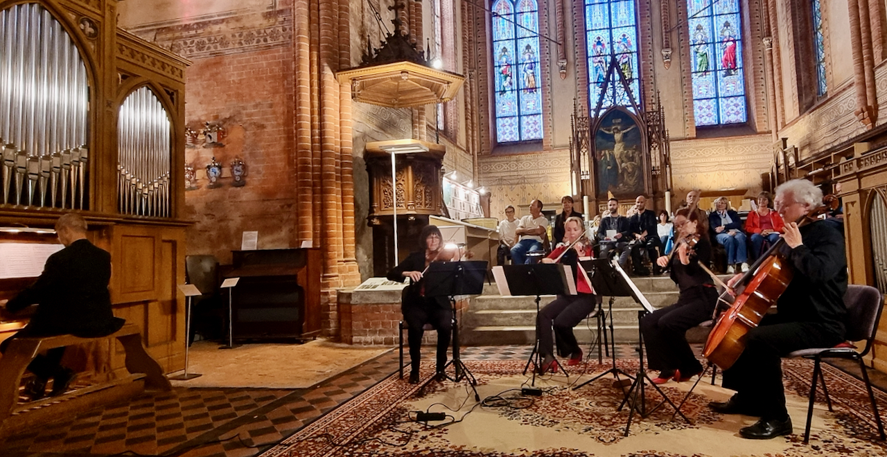 Das Programm begann mit Georg Friedrich Händels Orgelkonzert B-Dur Op. 4 Nr. 2, meisterhaft dargeboten von Friedrich Drese an der Orgel. Es folgte Wolfgang Amadeus Mozarts „Eine kleine Nachtmusik“, präsentiert von einem erstklassigen Streichquartett. Johannes Brahms‘ Streichquartett c-Moll Op. 51, zweiter Satz „Romanze“, fügte dem Abend eine tief emotionale Note hinzu.