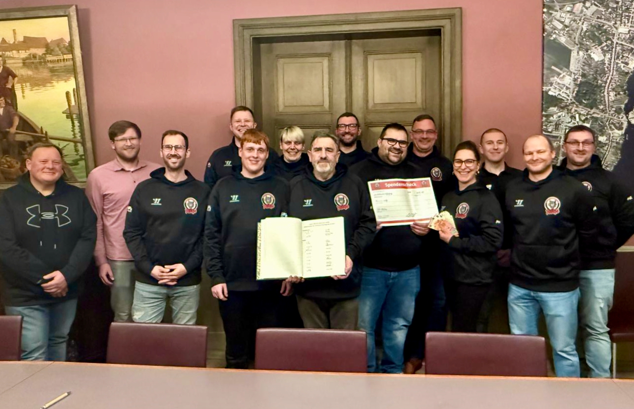 Große Ehre für die Malchower Wölfe: Sie haben gestern Abend gleich ein doppeltes Jubiläum gefeiert: 25 Jahre Malchower Eishalle und 25 Jahre Malchower Wölfe. Aus diesem Anlass lud Bürgermeister René Putzar die Eishockeymannschaft ins Rathaus ein, um ihnen eine besondere Ehre zu erweisen. Die Spieler durften sich in das Goldene Buch der Stadt eintragen. „Die Malchower Wölfe sind nicht nur sportlich ein Aushängeschild, sondern auch ein wichtiger Teil unserer Gemeinschaft“, betonte Putzar in seiner Ansprache.