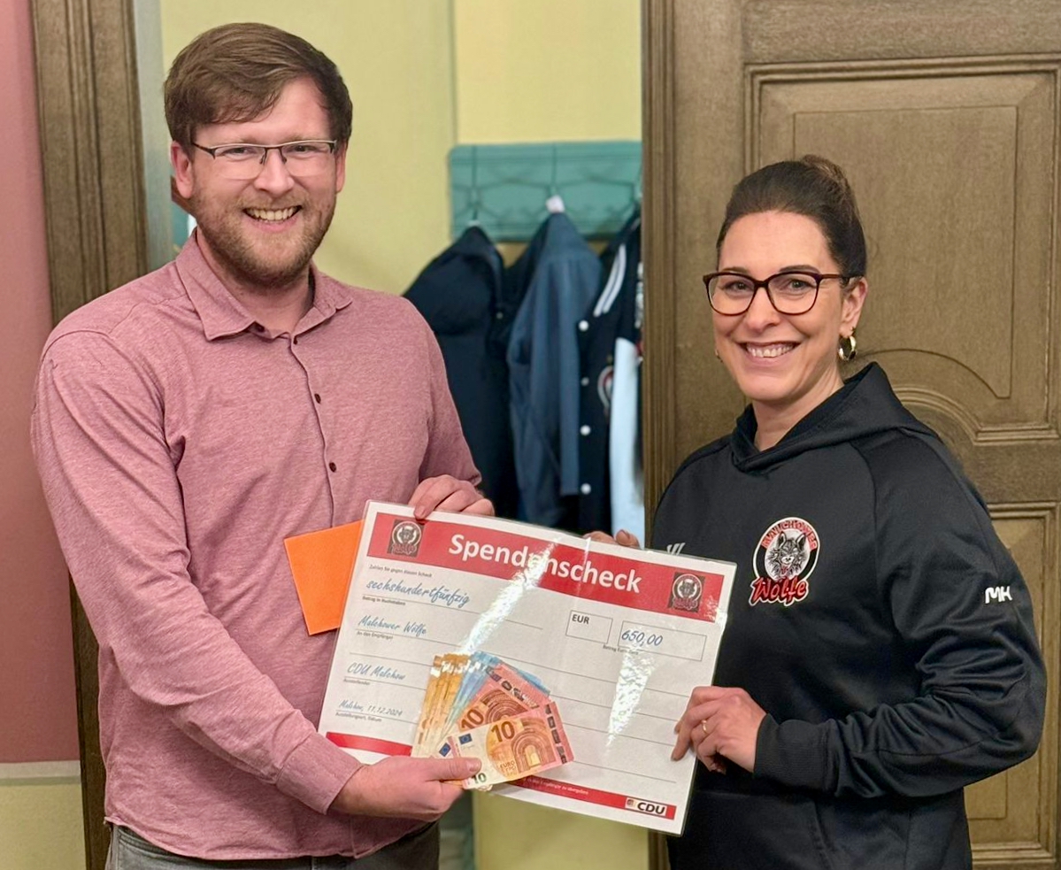 Neben der Ehrung gab es auch eine Überraschung: Die CDU Malchow übergab den Wölfen eine Spende in Höhe von 650 Euro. Diese Einnahmen hatte die Partei auf dem Adventsmarkt gesammelt, wo sie Bratwurst und Glühwein verkaufte. Die Spende wurde von Michael Meyer überreicht und sorgte für große Freude bei der Mannschaft.