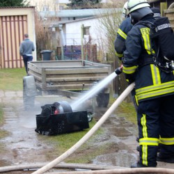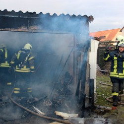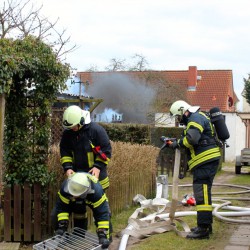 Nach ersten Erkenntnissen ist die Garage beim Heizen in Flammen geraten. Neben dem Gebäude werden in einem Schuppen Streifenhörnchen gehalten. Sie sind offenbar mit dem Schrecken davon gekommen.