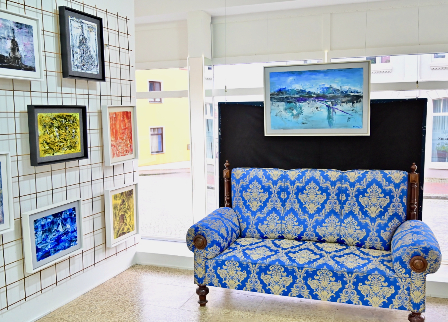 Trotz der Größe ist es richtig gemütlich geworden im alten Haus, in jeder Ecke gibt es irgendetwas zu entdecken – nicht nur die Werke von Marco. Da gibt’s beispielsweise den urigen „Bollerofen“, die alte DDR-Couch, historische Kino-Stühle oder ein Bild mit uralten Titeln des Magazins „Spiegel“. In den vergangenen Monaten hat der 51-Jährige zudem zu zahlreichen Veranstaltungen eingeladen, anderen Kunstschaffenden eine Bühne gegeben und auch außerhalb seiner Galerie ausgestellt. Dabei fällt auf: Die Besucher sind beeindruckt von der großen Vielfalt seiner Arbeiten, die von der abstrakten Malerei, über Landschafts- und Stadtmotive bis hin zu Portraits, die alles andere als 08/15 sind, reicht.