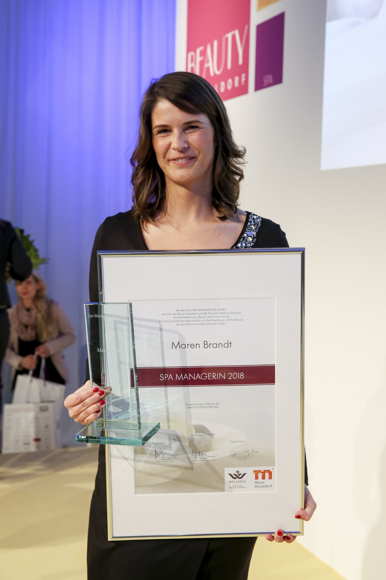 Top! Maren Brandt, Corporate Spa Manager vom Schloss Spa und Fleesensee SpaWorld aus Göhren-Lebbin, ist „Spa Managerin des Jahres 2018“. Mit dieser Auszeichnung würdigen die Messe Düsseldorf und der Deutsche Wellness Verband die wachsende Bedeutung von Spa Managern. Anlässlich der BEAUTY DÜSSELDORF 2018 wurde zum siebten Mal der Award „Spa Manager des Jahres“ für außergewöhnliches Spa Management verliehen.