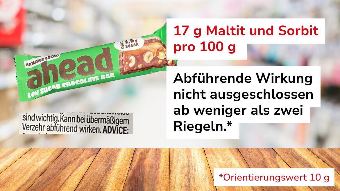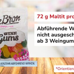 „Auf einigen Verpackungen ist der Warnhinweis jedoch kaum zu entdecken“, so Jana Fischer von der Verbraucherzentrale. „Wirklich hilfreich ist er bei den Lebensmitteln unserer Stichprobe sowieso nicht. Es dürften schon geringe Verzehrmengen genügen, um bei empfindlichen Personen Durchfälle auszulösen. Das kann schon ab 10 Gramm Maltit bzw. Sorbit pro Portion der Fall sein.“ Zu den Zuckertauschstoffen zählen unter anderem Zuckeralkohole – auch mehrwertige Alkohole oder Polyole genannt – wie Maltit oder Sorbit.