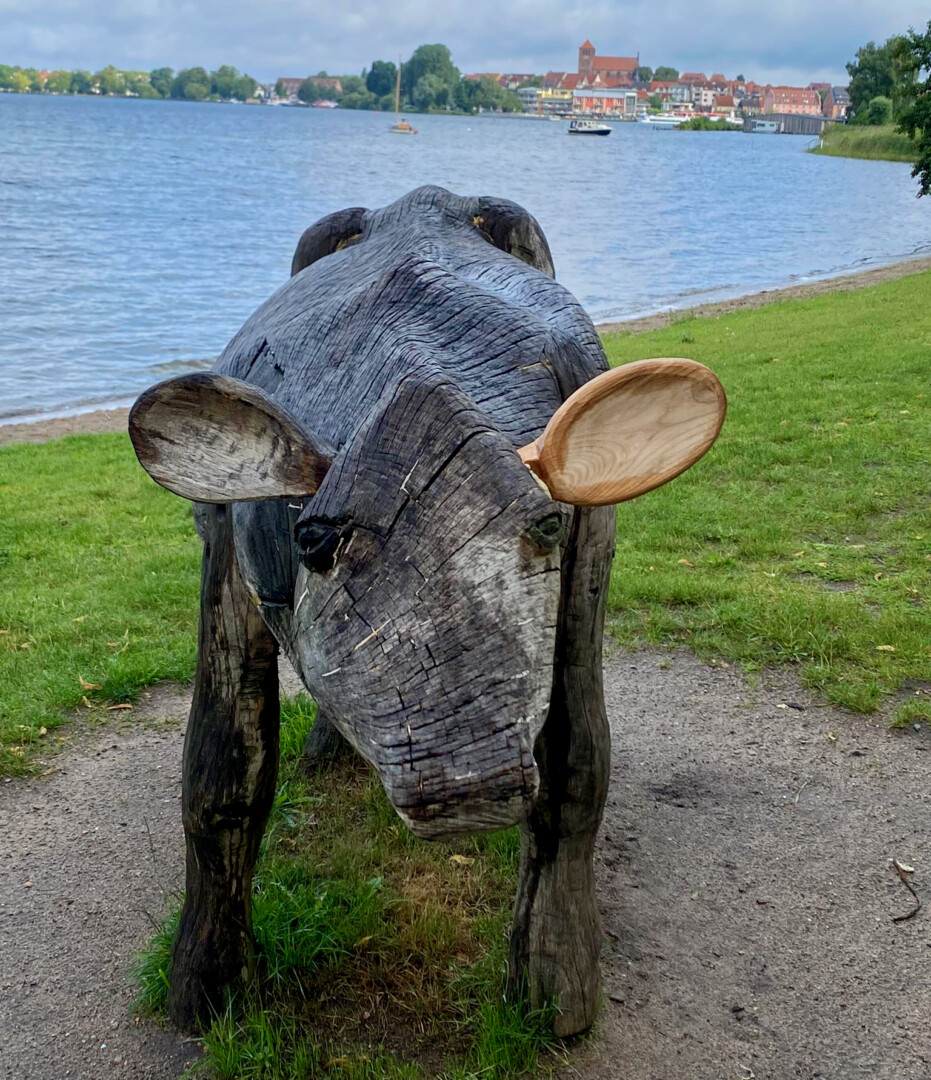 Zu Beginn des Wochenendes noch eine schöne Nachricht: Die Kuh an der Warener Kuhtränke – seit Jahren ein beliebtes Fotomotiv – kann jetzt auch wieder richtig hören. Randalierer hatten ein Ohr zerstört, so dass sie eine Zeit lang ziemlich traurig da stand. Doch Mitarbeiter des Warener Stadtbauhofes haben sie „operiert“ und ihr wieder ein Ohr gebastelt. „Wenn man genau hinsieht, kann man sie jetzt sogar dankbar mit ihren Zwei-farb-Öhrchen wedeln sehen“, schreibt Christiane Scherfig als Chefin des „FloMaLa“, die das Holztier „Karoline“ getauft hat. Sie bedankt sich gleichzeitig bei den Mitarbeitern des Stadtbauhofes.