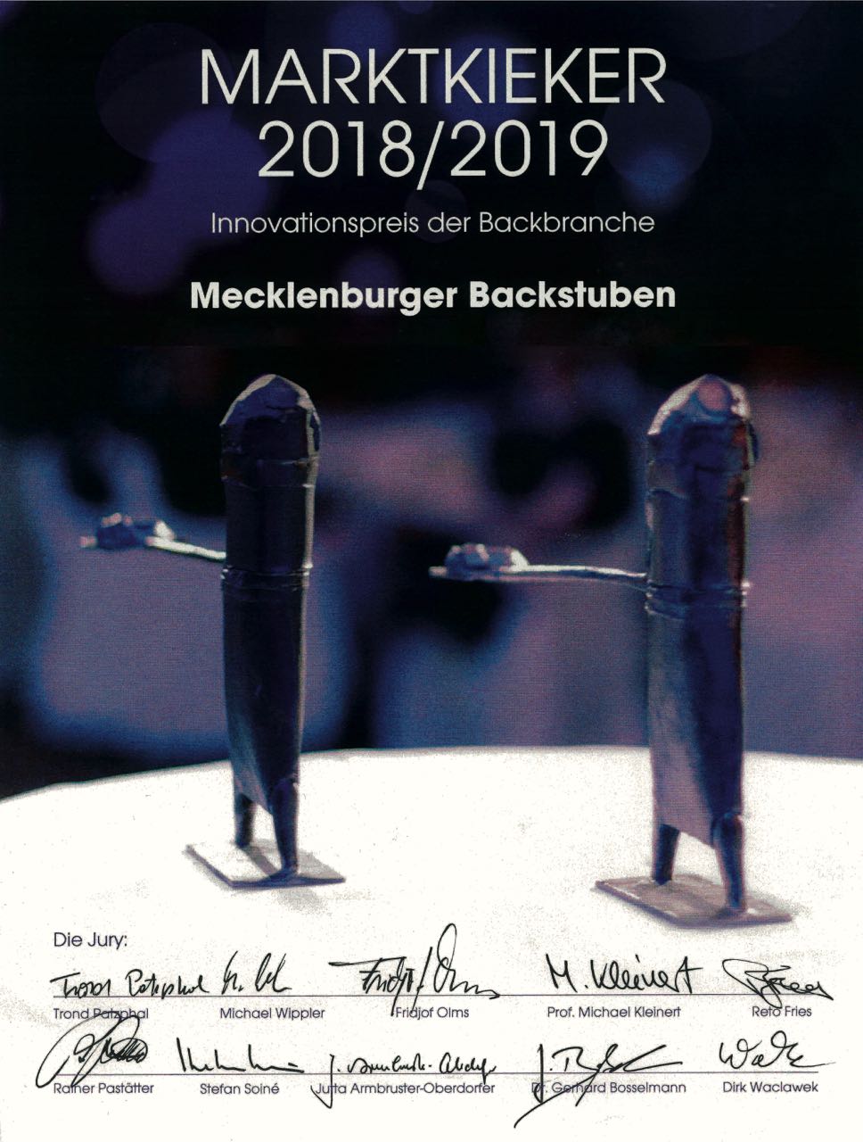 Die Mecklenburger Backstuben GmbH mit Sitz in Waren ist mit dem wichtigsten Unternehmerpreis der Backbranche Deutschlands ausgezeichnet worden. Das Fachmagazin „Marktkieker“ vergab den Preis und meint: Die Preisträger Günther und Bärbel Neumann, Kathrin Rossa und Dr. Christina Kohn (Mecklenburger Backstuben GmbH) haben nach Überzeugung der unabhängigen Fachjury mit Ihrem Unternehmen Konzepte entwickelt, die beispielgebend für die Branche sind.