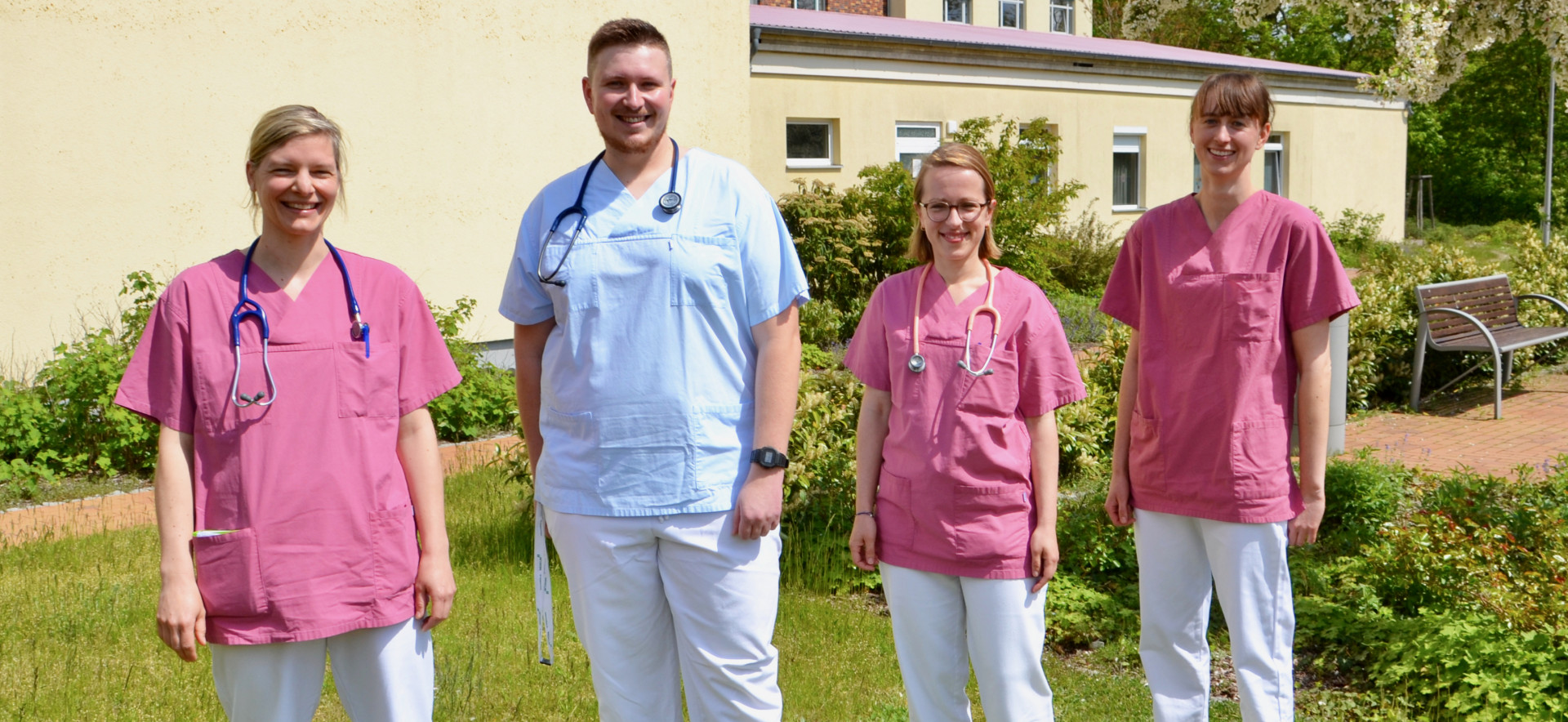Das Facharztteam hat seit Januar Unterstützung von engagierten Assistenzärzten, die sich ganz frisch auf dem Weg zur Qualifikation zum Facharzt befinden und am MediClin Müritz-Klinikum ausbilden lassen. Die vier jungen Ärzte sind: Katharina Niederlein, Nora Rosenberger, Christian Savuljeskovic und Steffi Winterscheid.