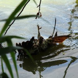 Eine abgerissene Angelschnur samt Haken und Köderfisch wurde heute für einen Rotmilan in Melz bei Röbel zur Todesfalle. Das Tier ertrank nach einem minutenlangen Todeskampf. Ein Spaziergänger entdeckte heute Nachmittag den Greifvogel und alarmierte umgehend die Rettungskräfte.