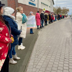 Wir waren Teilnehmer in der Menschenkette.Neben uns Menschen,die weit angereist waren.Warum können die Einheimischen nicht verstehen ,was in nächster Zukunft auf dem Spiel steht.Es gibt nichts Wichtigeres als sich zeitgleich zu der Politik der Zerstörer aller menschlicher Werte, zu wehren. Die Wähler dieser Koalition dürften eigentlich auch keinen entspannten Schlaf mehr haben. Ich habe Angst ,dass auch meine Söhne in den ungerechten Krieg ziehen müssen.Ich gebe meine Söhne nicht.Der Song von R.Mai muss laut im Bundestag abgespielt werden…täglich…Dort befinden sich die Verantwortlichen,die dagegen stimmten könnten,wenn sie wollten. Zwei Partein haben gegen die Waffenlieferungen gestimmt.Rechts und links.Die Mitte ist dafür.Ihre Statistik ist eine Manipulation in ihrem Interesse. Angeblich 53 %. Säuglinge einbegriffen.Wir kämpfen weiter gegen diesen Irrsinn
