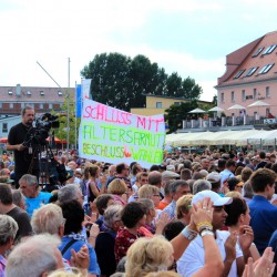 Weit mehr als 1000 Warener und Urlauber lauschten der Wahlkampfrede Merkels, die bis auf den derzeit schwelenden „Abhörskandal“ alle aktuellen innen- und außenpolitischen Themen ansprach. So die Zahl der Arbeitslosen, die zwar in den vergangenen Jahren deutlich gesunken sei, aber noch weiter sinken müsse. Und: „Es kann nicht sein, dass Menschen den ganzenTag arbeiten gehen und davon nicht leben können“, sagte die Bundeskanzlerin, hält aber dennoch nichts von einem einheitlichen Mindestlohn, sondern individuellen Lösungen.