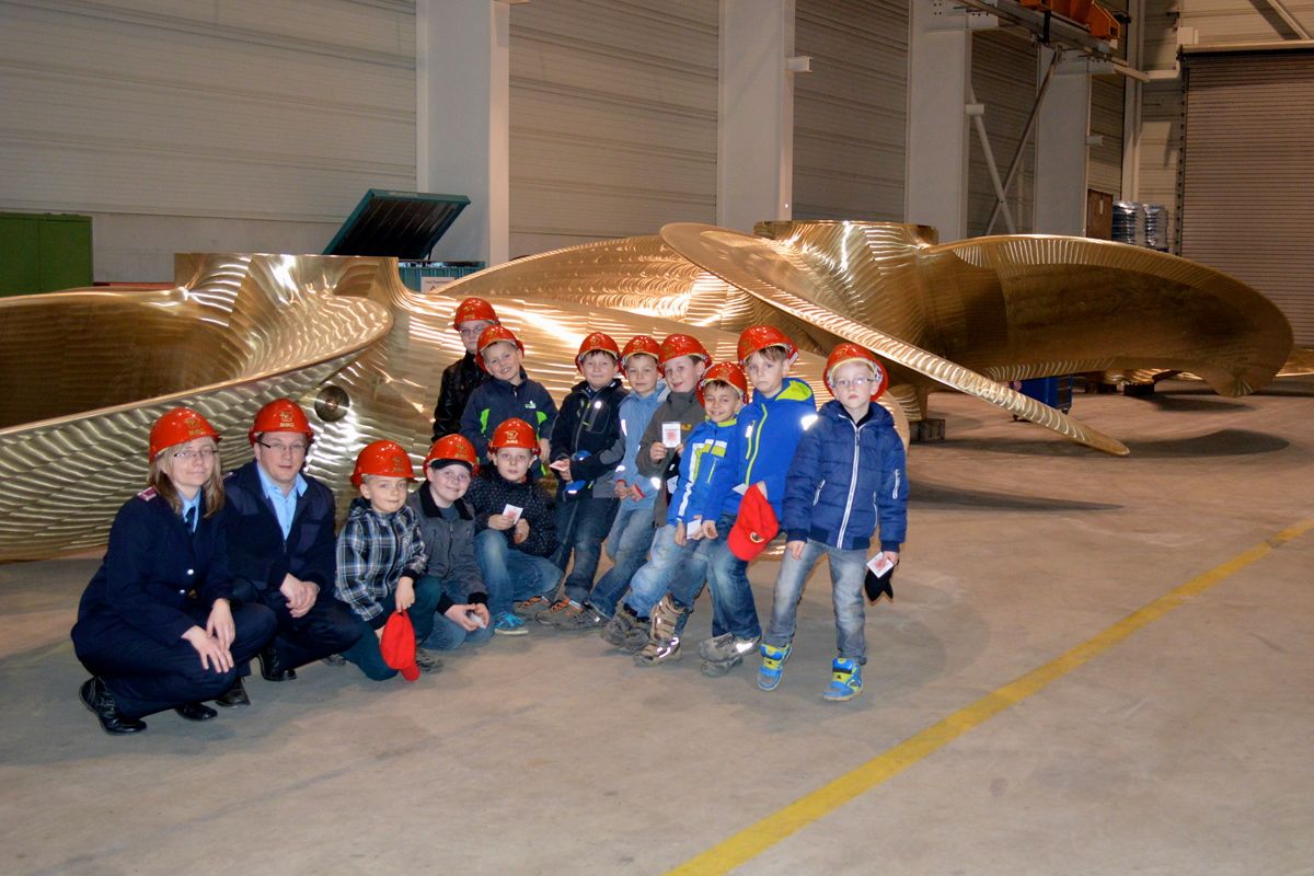 Die Mitarbeiter Herr Metz und Herr Hellmann erklärten unter anderem, wie Schiffsschrauben gegossen und Rohlinge bearbeitet werden. Sogar einen U-Boot-Propeller konnten die Nachwuchs-Feuerwehrleute in Augenschein nehmen.