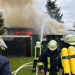 Nur durch den schnellen Löscheinsatz konnte ein Übergreifen auf direkt benachbarte Wohnhäuser verhindert werden. „In der Werkstatt befand sich eine Hebebühne, zwei Fahrzeuge, Reifen und Ölfässer. Immer wieder gab es kleinere Explosionen“, sagte Schüler. Die Polizei hat den Kriminaldauerdienst verständigt. Ob ein Brandursachenermittler eingesetzt wird, stand zur Stunde noch nicht fest.