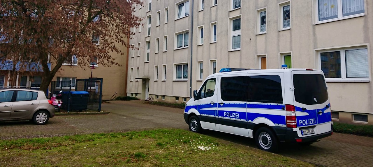 „Der Mann ist noch jung, vielleicht um die 30“, meinte eine Nachbarin, die sich erstaunt über das Polizeiauto zeigte, dass seit Stunden vor der Tür an der hinteren Hausseite steht. Der Mieter der Wohnung, die ein Mann mit Sturmhaube und weitere Beamte am Morgen aufbrachen, wohne seit etwa drei Jahren hier. Er sei nicht zu Hause gewesen, sonst nett und falle kaum auf, am meisten noch durch die Tätowierungen bis zum Hals. Was für Zeichen das sind, da habe sie nicht genau hingeschaut.