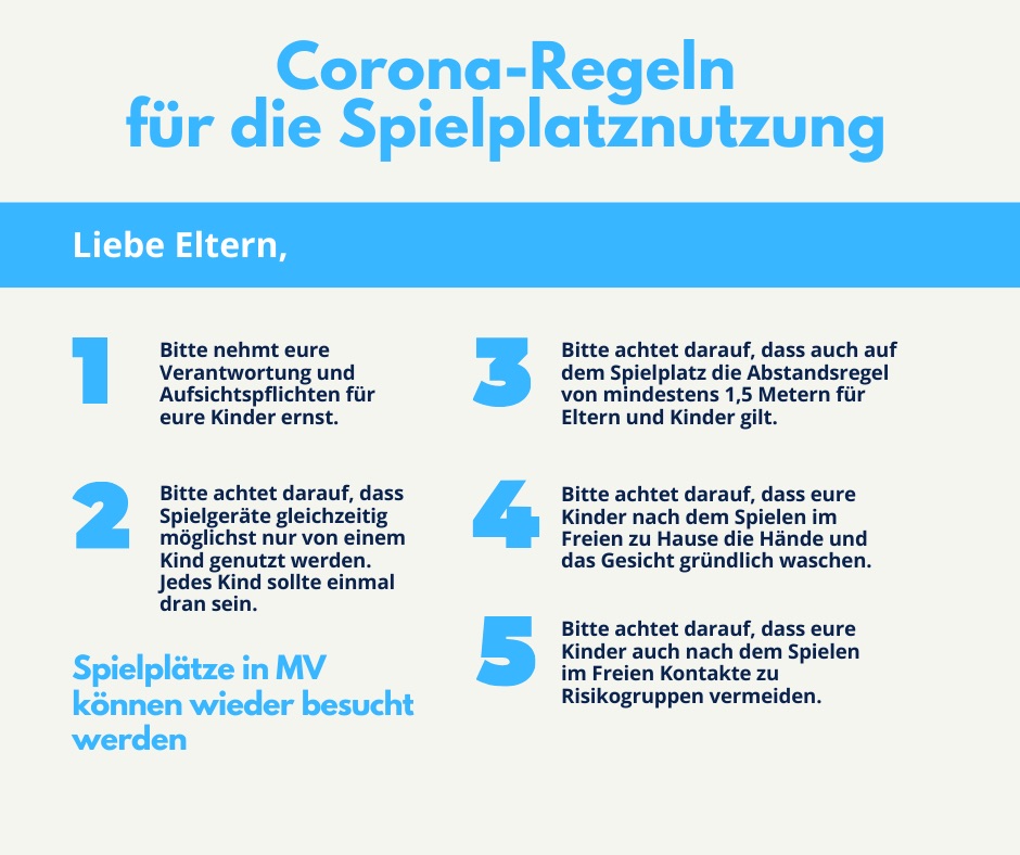 MV-Sozialministerin Stefanie Drese hat noch mal ein paar Tipps parat, damit sich Kinder auf den jetzt wieder eröffneten Spielpätzen nicht anstecken. Hier ein Auszug aus ihrer Pressemitteilung: