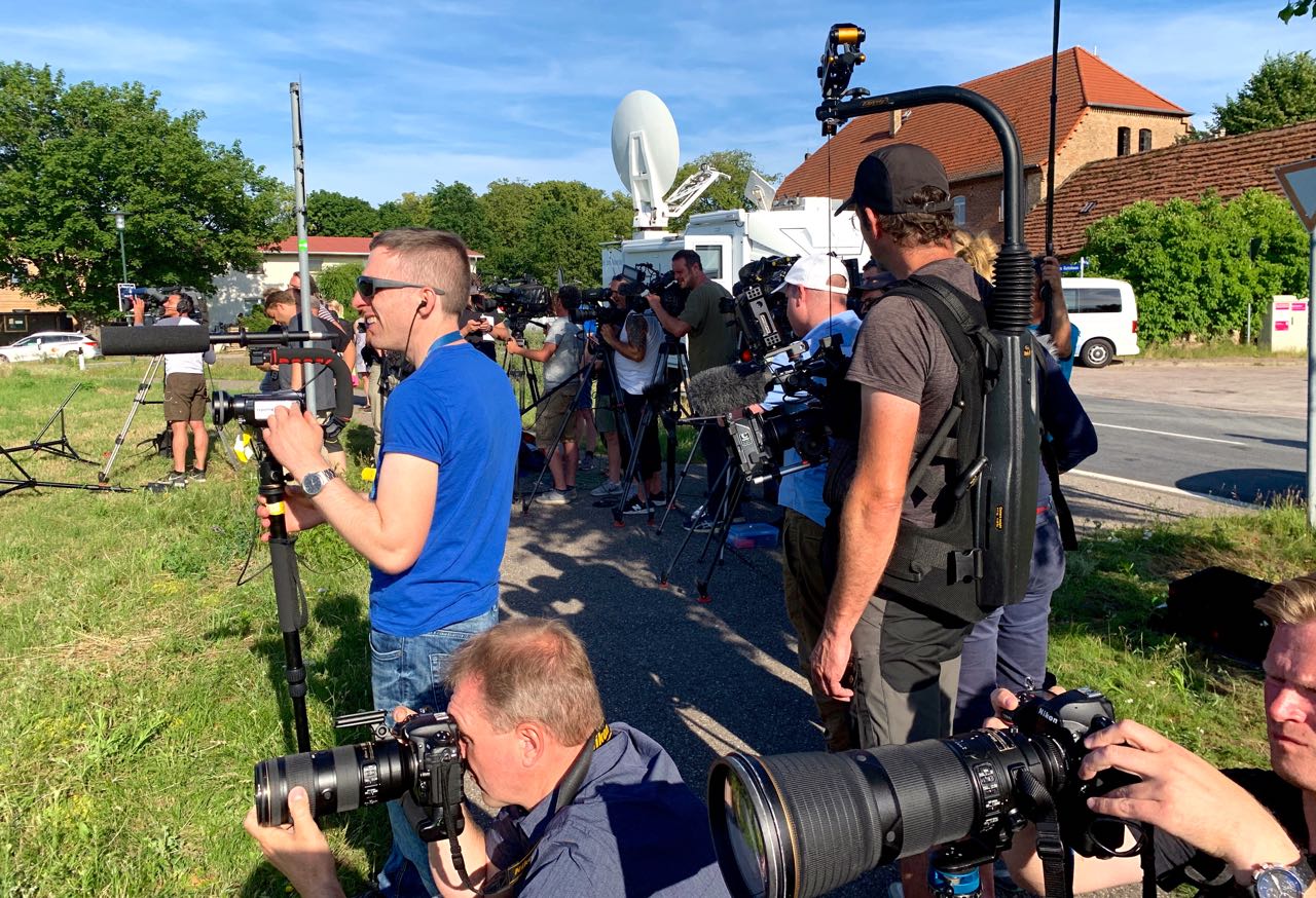 Aber alle hatten an der in Nossentin eingerichteten Pressestelle ein- und dasselbe Problem: Kaum Handy-Empfang. Und so sah man gestern viele Reporter mit ausgestrecktem Arm auf der verzweifelten Suche nach wenigstens einem LTE-Balken.